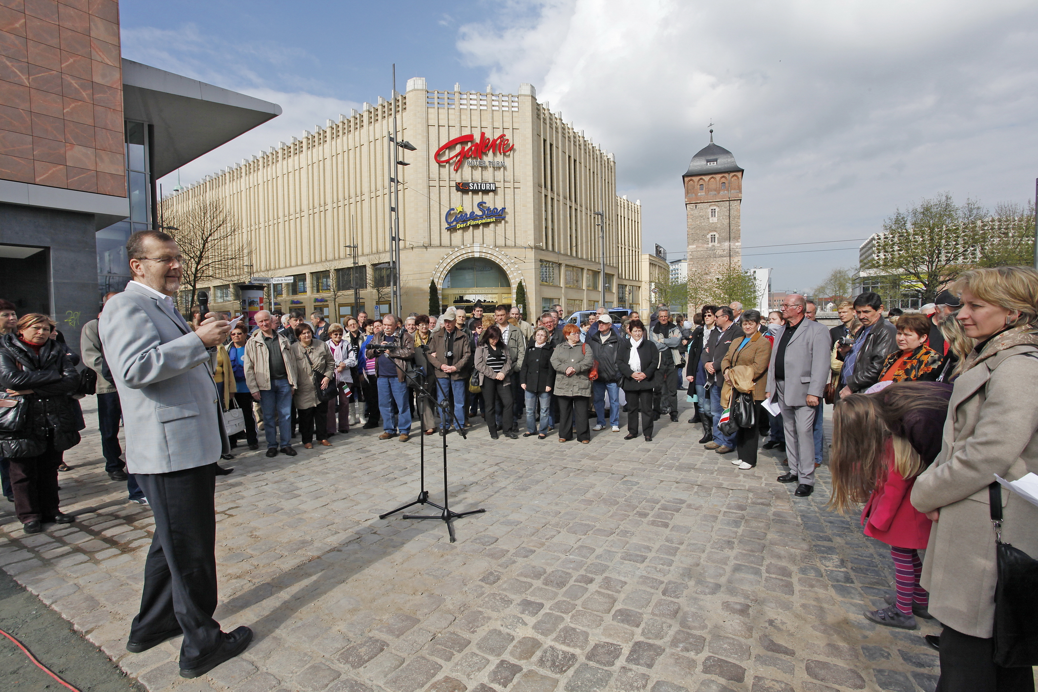 Nagy érdeklődést és nagy tetszést váltott ki egy volt karl-marx-városi lakos emlékezete is, aki magyar és német nyelven tartott beszédében a hallgatóságot a 60-as és 70-es évekbe repítette vissza, amikor is újra felidézte fiatalkori élményeit városunkban. A jelen lévő vendégek például hallhatták, hogyan történt a „villamosrablás” az akkori gablenzi kollégiumban, vagy hogy melyik orvos adta meg a remélt betegszabadságot súlyos torokfájás miatt, megfelelő ellentételezésért, pálinka formájában.