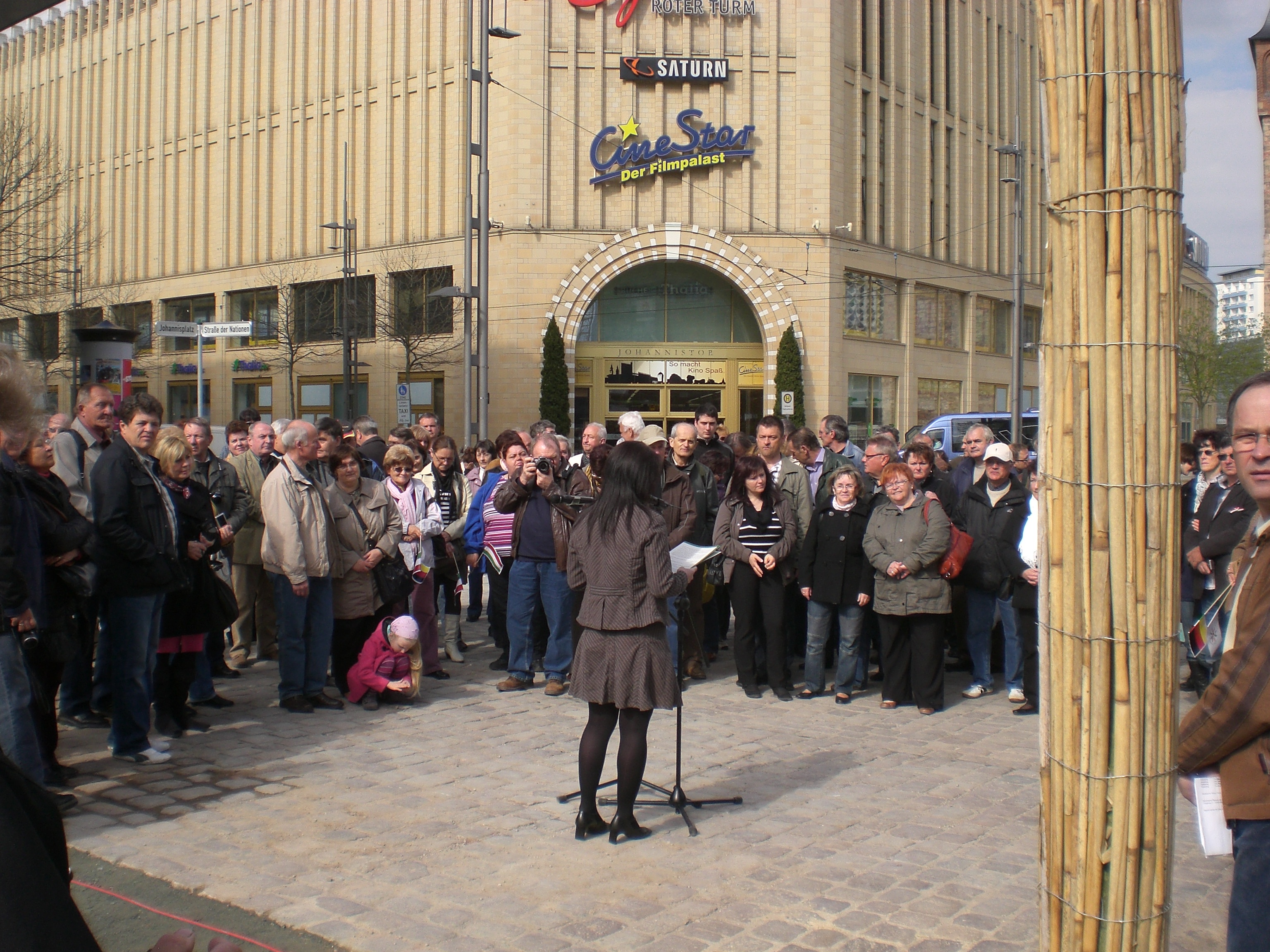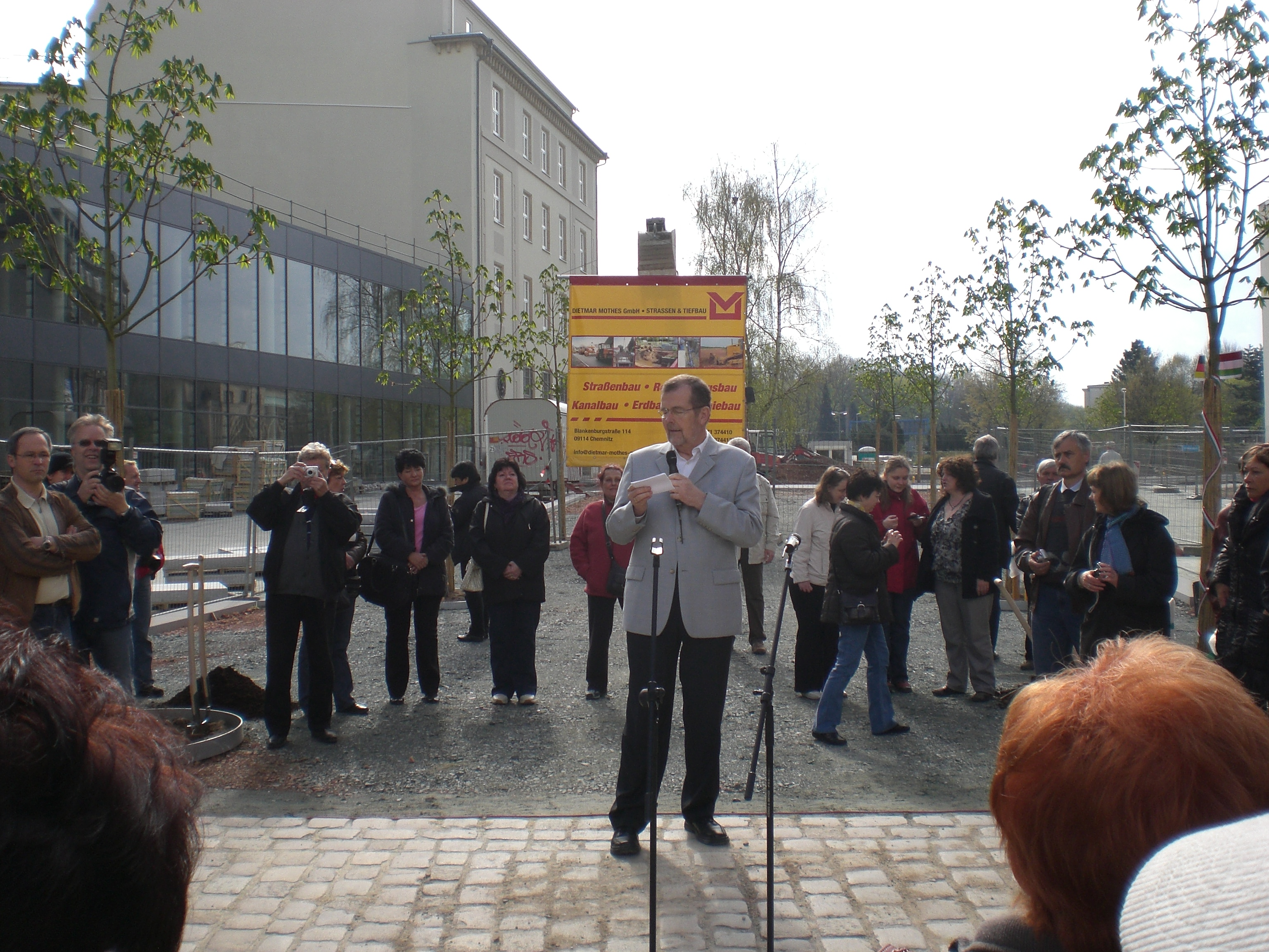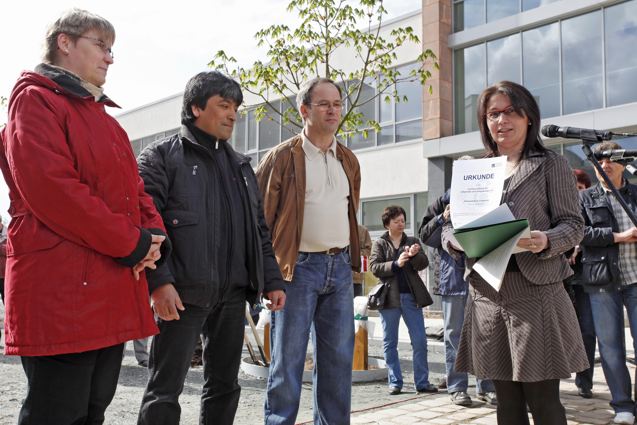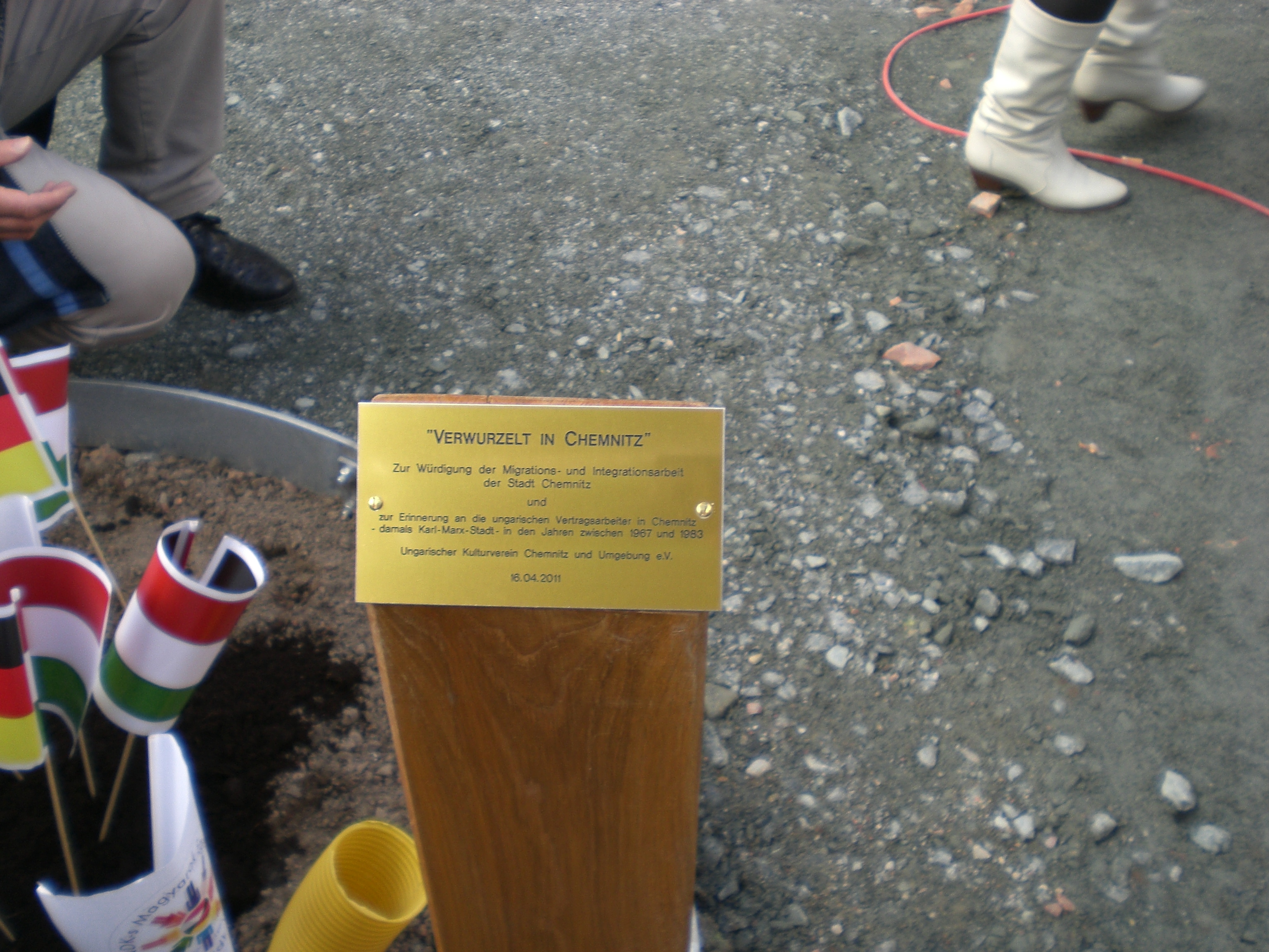 Az eseményt Chemnitz város építésügyi polgármestere, Petra Wesseler asszony nyitotta meg, aki üdvözlő beszédében rámutatott a fák jelentőségére a város képében, és kiemelte a faültetés mint a külföldi származású emberek sikeres integrációjának szimbolikus jelképének jelentőségét szülővárosunkban. Ezt az ötletet lelkesen támogatta Dr. Martin Gillo, Szászország idegenügyi megbízottja is, aki üdvözlő beszédében elismerte Chemnitz városának sikeres integrációs munkáját. Chemnitz város külföldiekért felelős megbízottja, Etelka Kobuß asszony elmagyarázta a vendégeknek a projekt keletkezését és a vele kapcsolatos célokat, hogy a chemnitzi lakosoknak nagyon szemléletes módon közelebb hozzák a külföldi polgártársaik integrációját, és egyúttal tartós jelét adják a korábbi szerződéses munkavállalók választott hazájukhoz fűződő kötődésének.